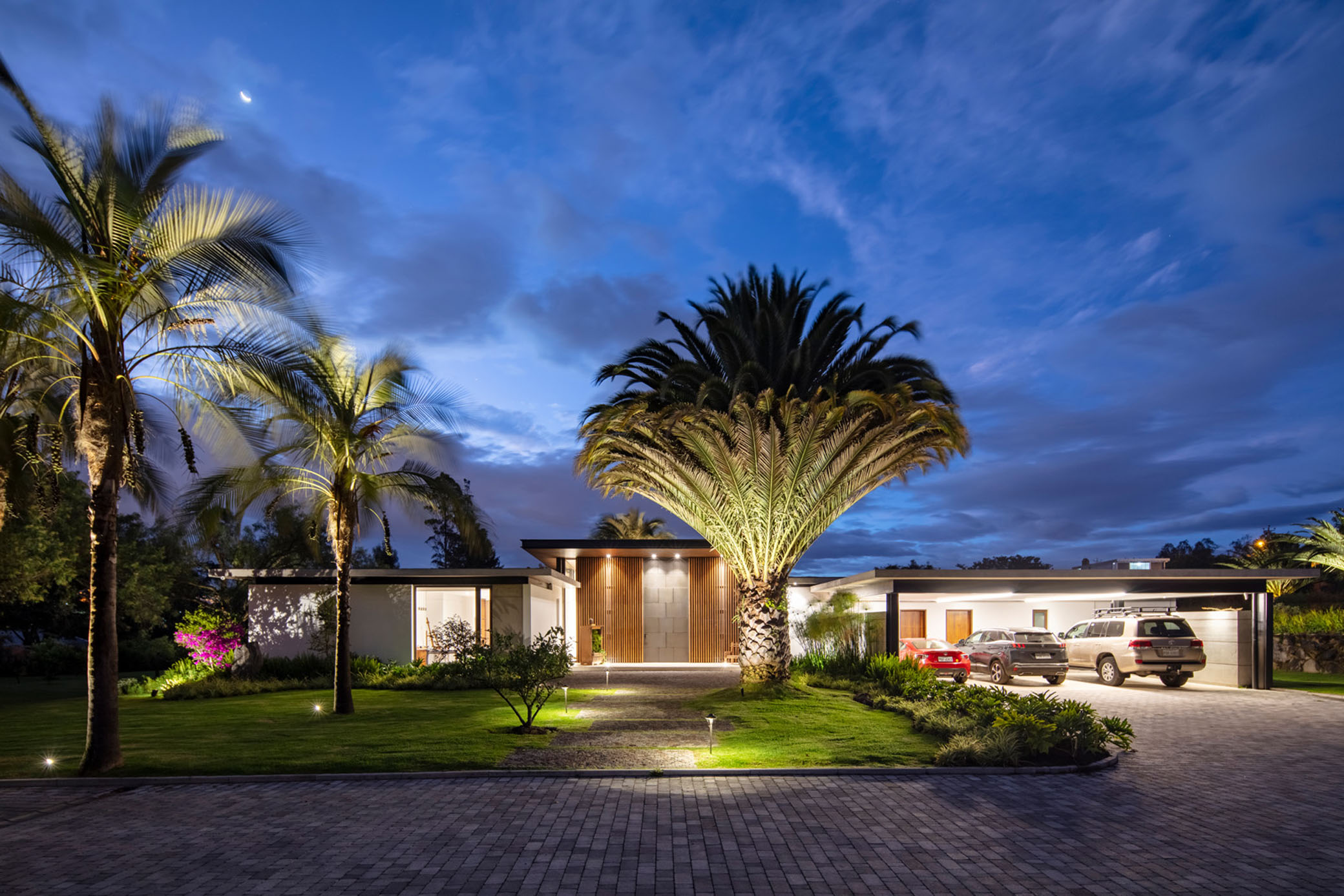 Proyecto de remodelación y ampliación de una casa existente construida por nuestra firma, pasando de un lenguaje tradicional con cubiertas inclinadas y volúmenes de estilo hispánico y colonial hacia una arquitectura de vanguardia.